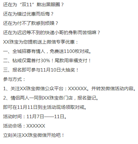 給大家看一段某地珠寶店做的雙十一活動廣告: