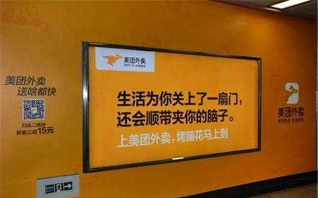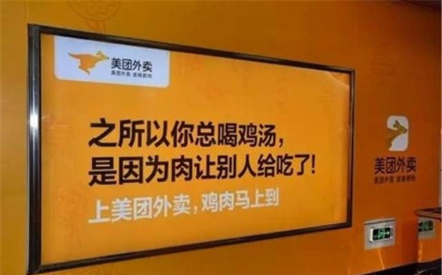 美團(tuán)外賣(mài)的喪氣毒雞湯也是地鐵里的一股清流。